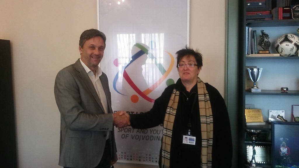 dr Jovanka Lastić, direktorica Srpskog zabavišta, osnovne škole, gimnazije i đačkog doma „Nikola Tesla“ iz Budimpešte u poseti Pokrajinskom sekretaru za sport i omladinu Vladimiru Batezu